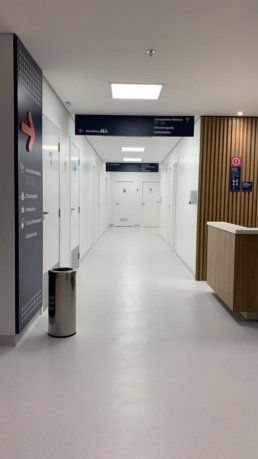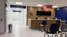 Clínica com 2 andares, conta com ambulatórios, consultórios e sala de coleta de sangue.
