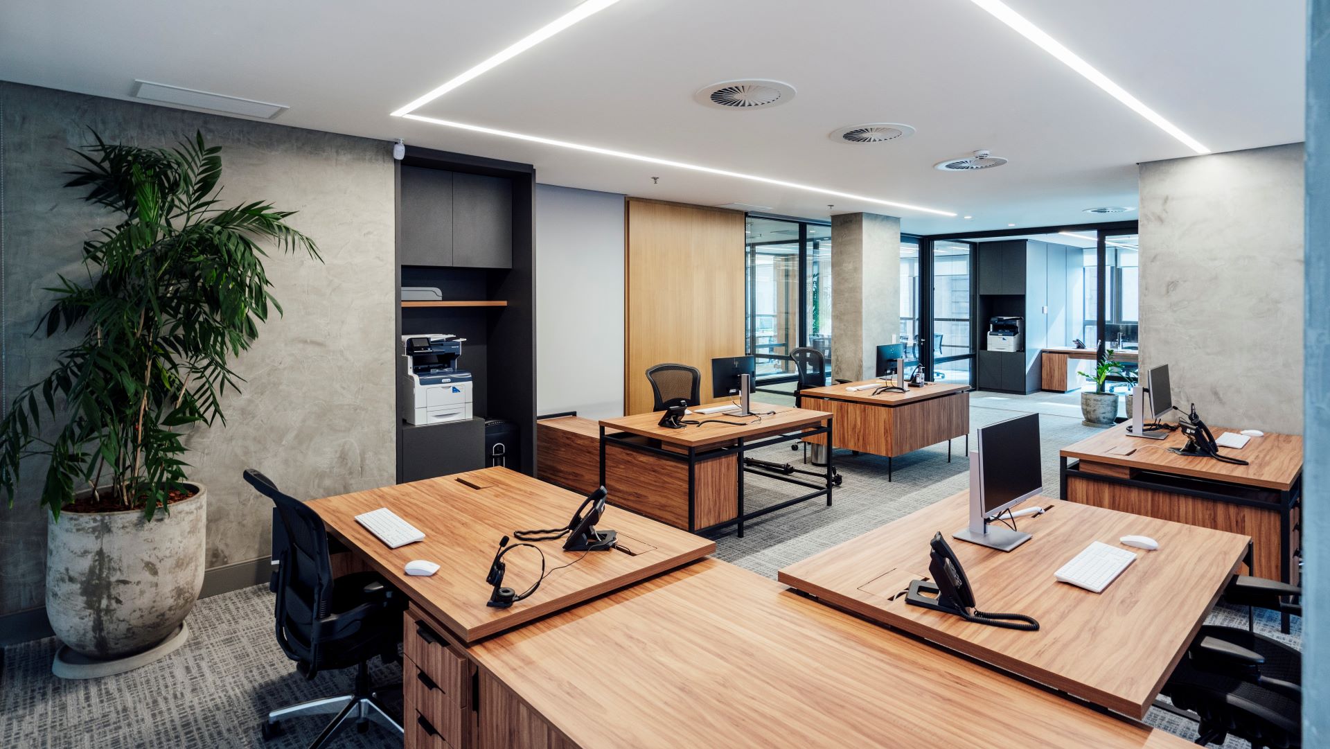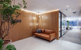 Reforma completa de 470m² em prédio comercial no coração da capital, Porto Alegre. Espaço, conta com área de atendimento ao cliente, office com mais de 30 postos de trabalho, salas de treinamentos, refeitório, área de vivência, diversas salas de gestão, reuniões e sala de conferência.