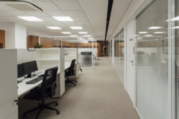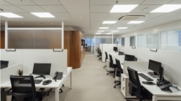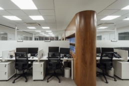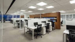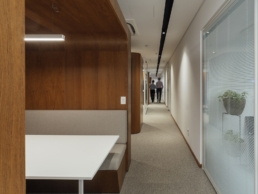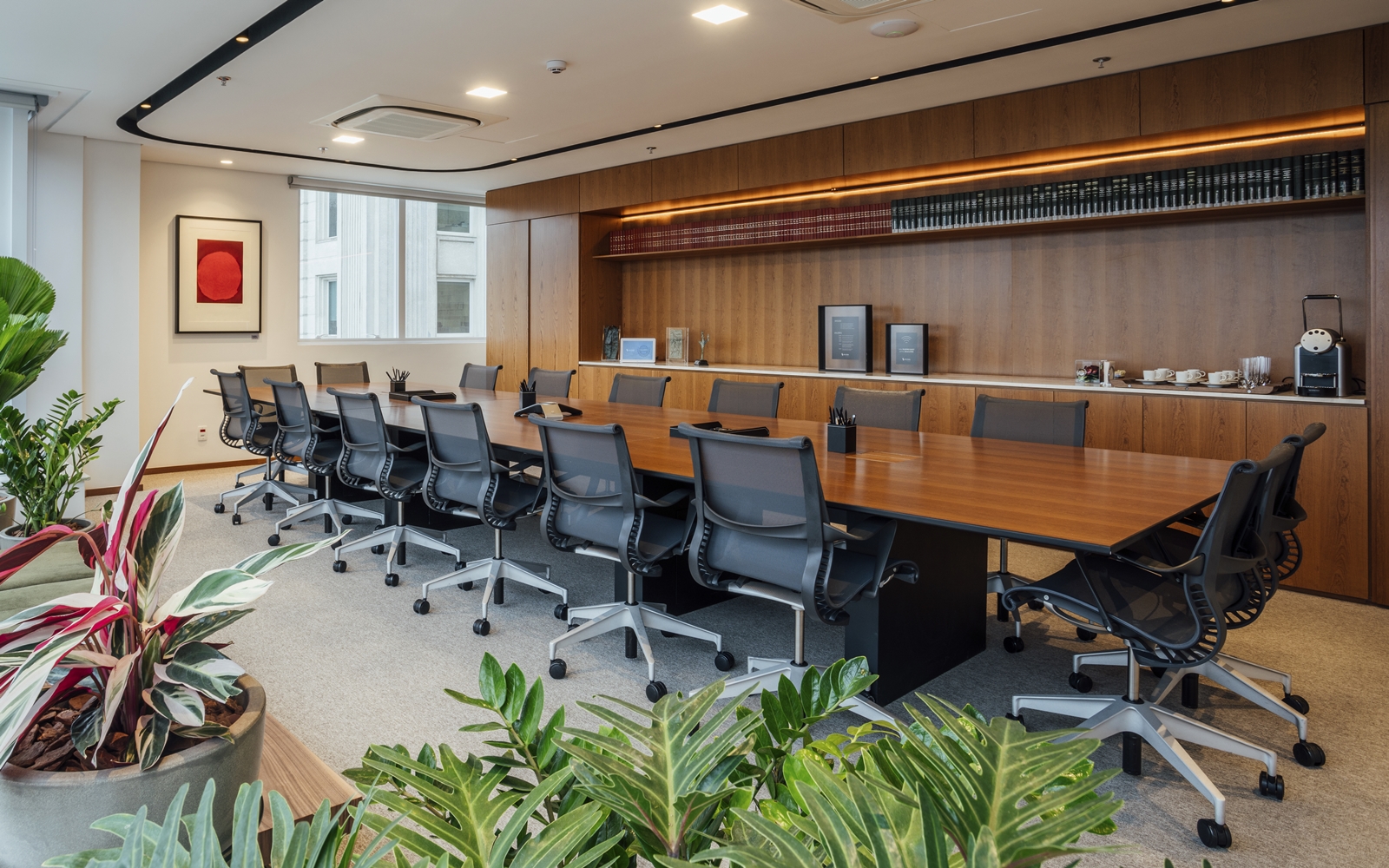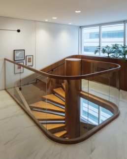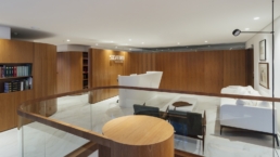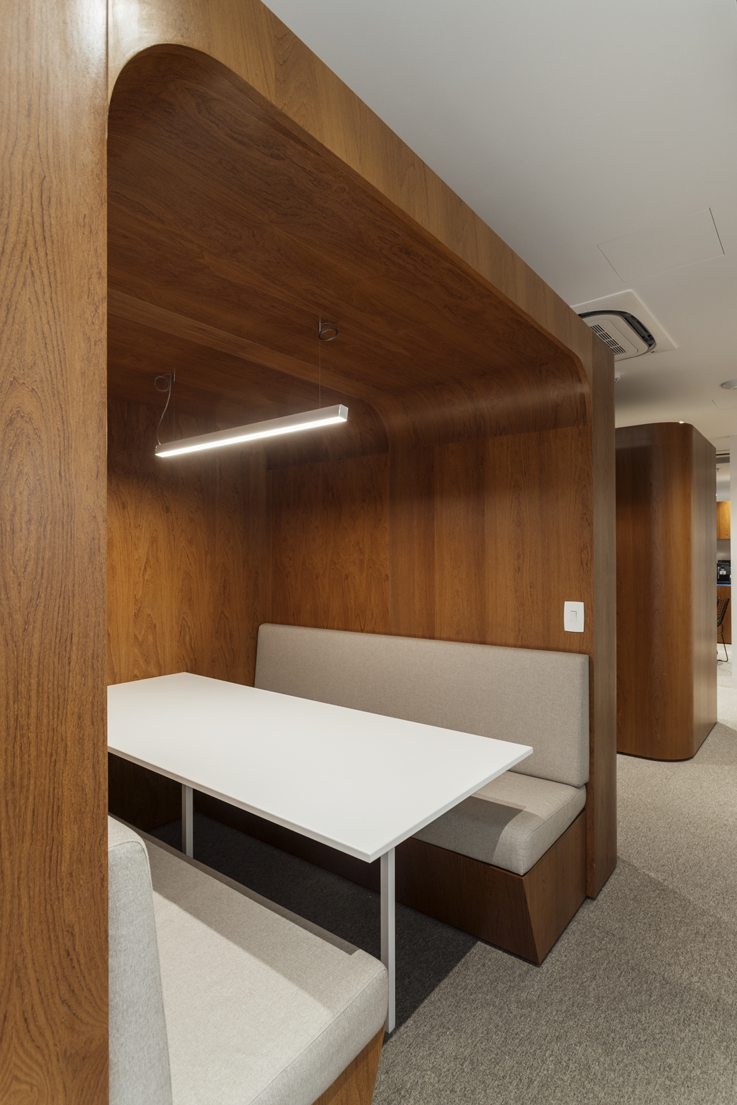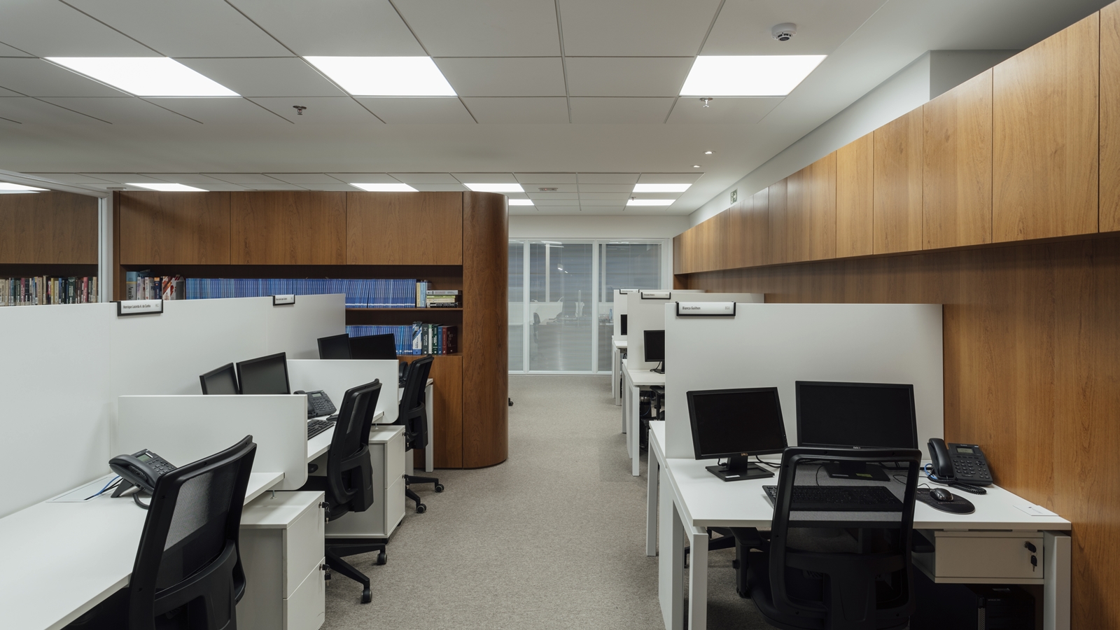 Com 90 dias de obras, o espaço de 927m² distribuídos em 2 andares e enterligados internamente com escada em acabamento de marcenaria, possui amplo piso-elevado e comporta o corpo técnico de advogados e especialistas da empresa e ainda as equipes administrativas e de apoio.