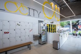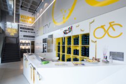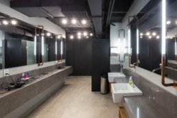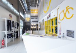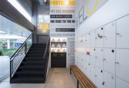 O projeto desenvolvido especialmente para a Studio Velocity possui espaço bastante funcional e moderno. O espaço conta, além da área de exercícios, dois vestiários e escritório administrativo.